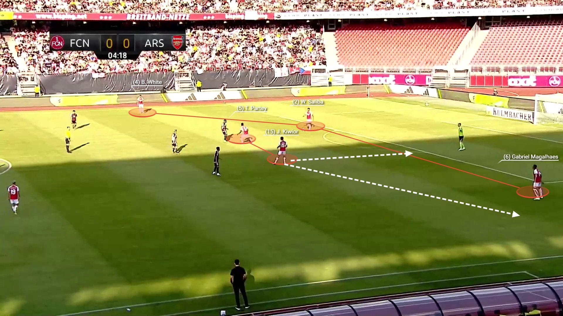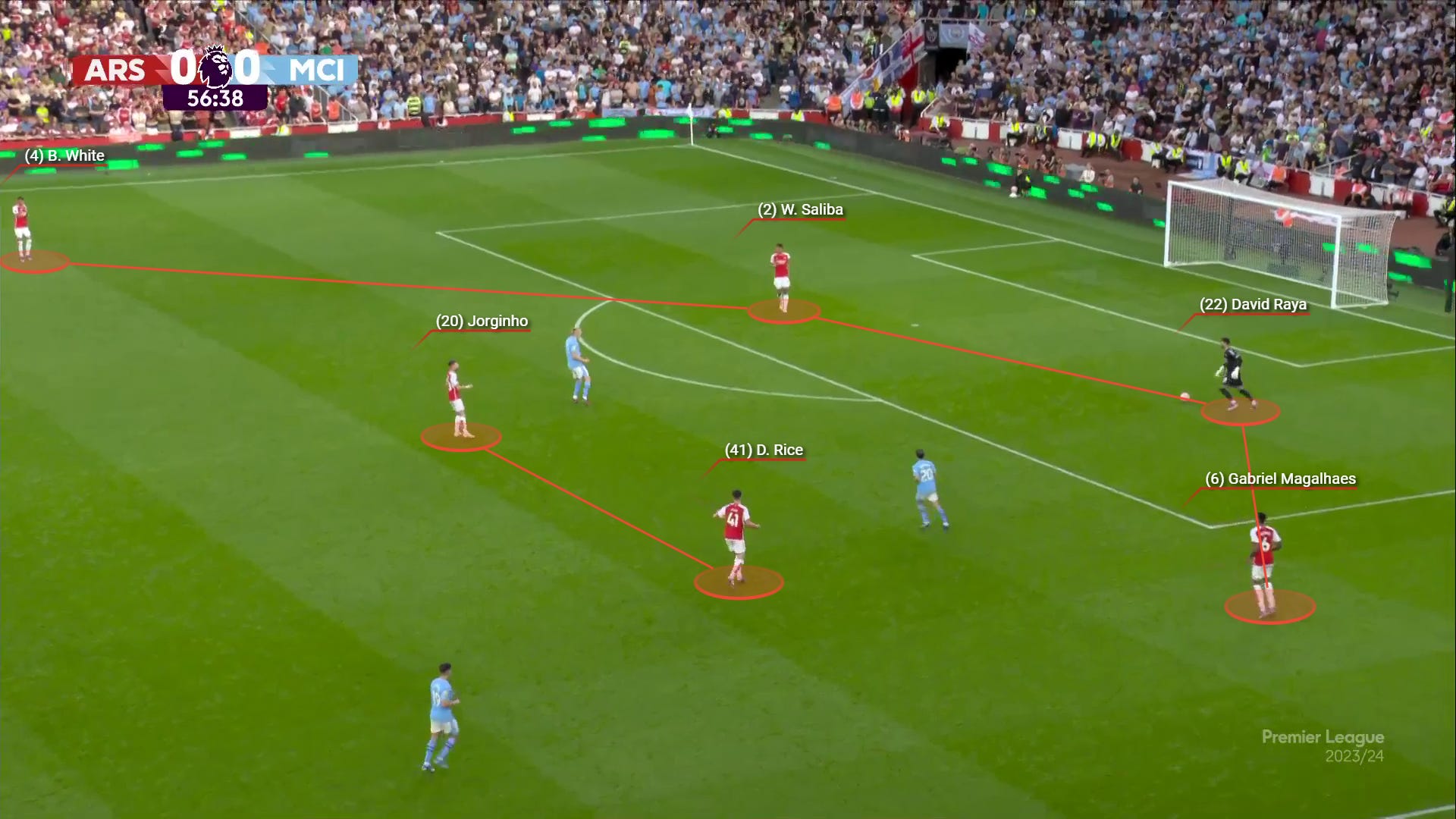 Một lý do giải thích cho sơ đồ 4–2–4 của Arsenal là thủ môn David Raya chủ động hơn Ramsdale trong các pha cầm bóng. Vị trí của Raya (gần như ở vị trí trung vệ thứ ba) cho phép Gabriel và Saliba di chuyển rộng hơn, đồng thời tạo điều kiện cho Ben White di chuyển về phía trước, ngoài ra Raya phát triển bóng tốt hơn Ramsdale. Khả năng này đặc biệt hữu ích với Pháo thủ vì cấu trúc 4–2–4 của Arsenal giúp kéo giãn tuyến trên của đối phương và từ đó tạo ra khoảng trống để tấn công.
