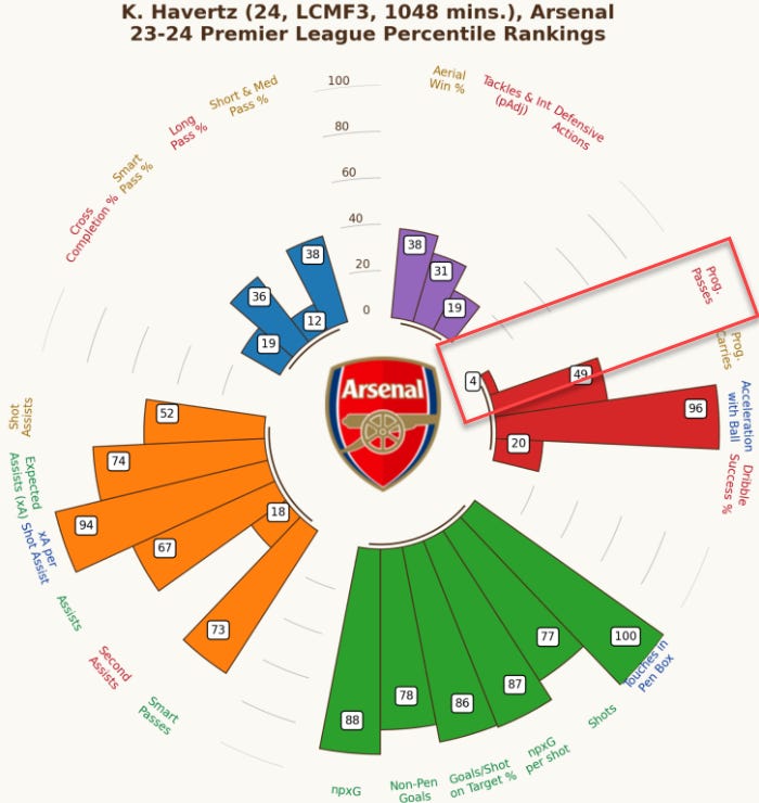 Havertz có điểm tương đương hoặc cao hơn Xhaka về mọi mặt nhưng thua xa ở khả năng chuyền bóng.